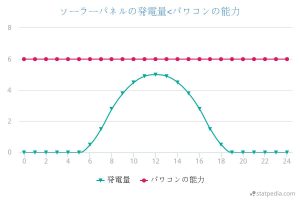ソーラーパネルの発電量や、実際の発電量、パワコンの変換能力との関係を説明しましたが、